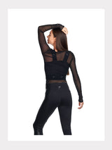 Das leichte langarm Mesh Top von JIV ergänzt Ihr Crop Top perfekt.